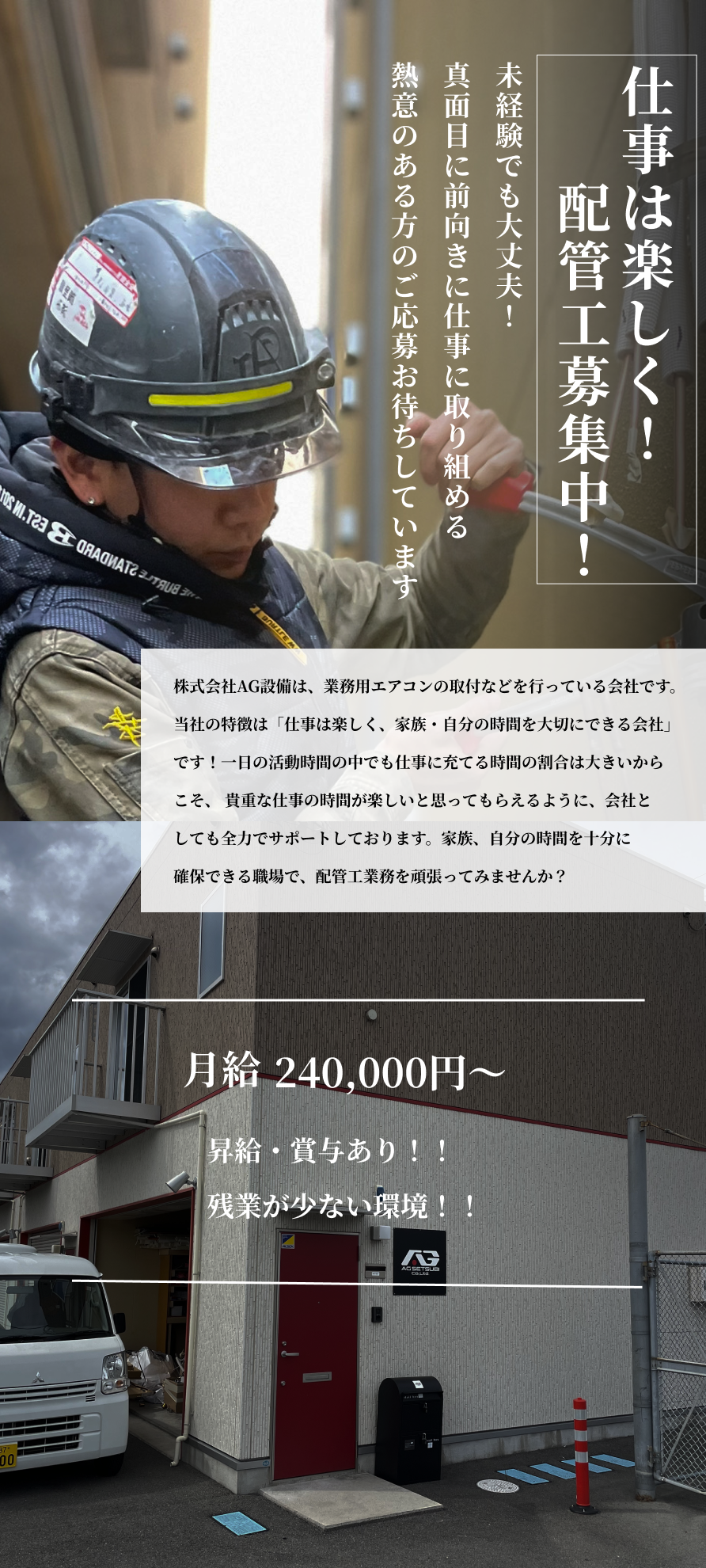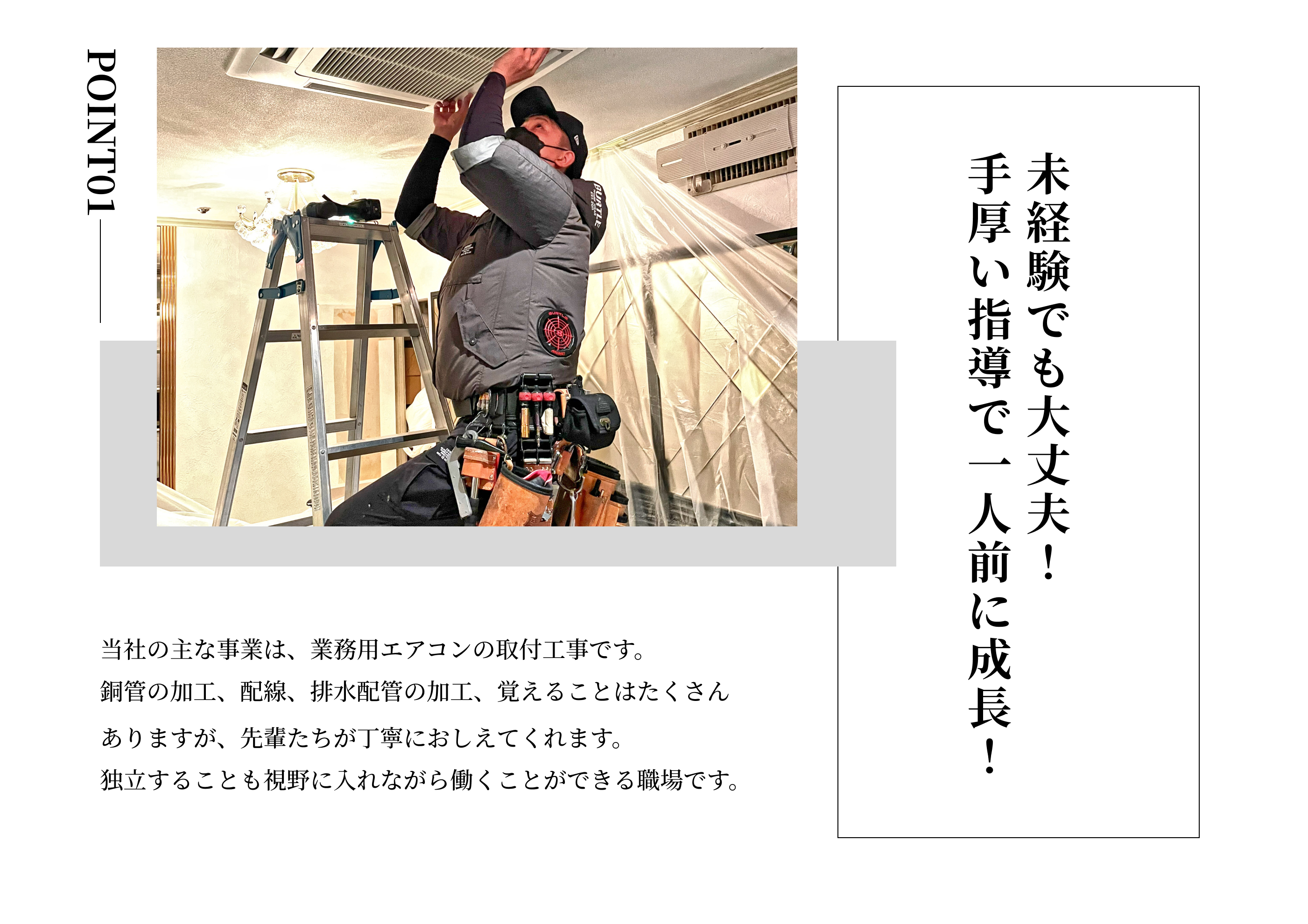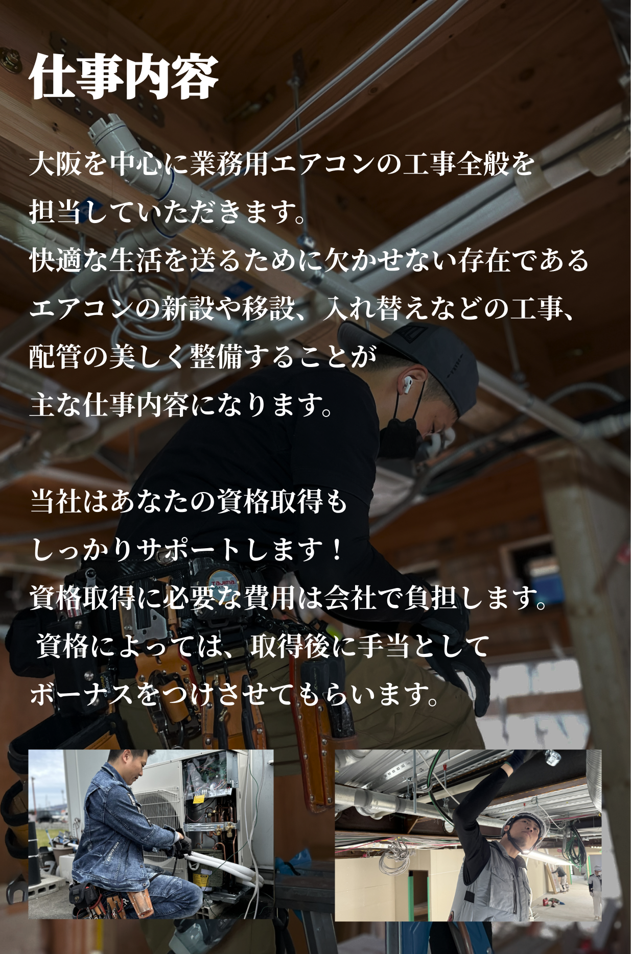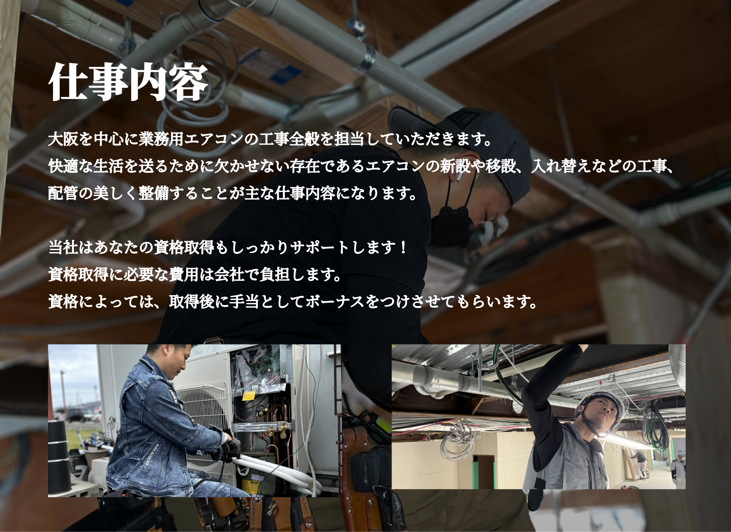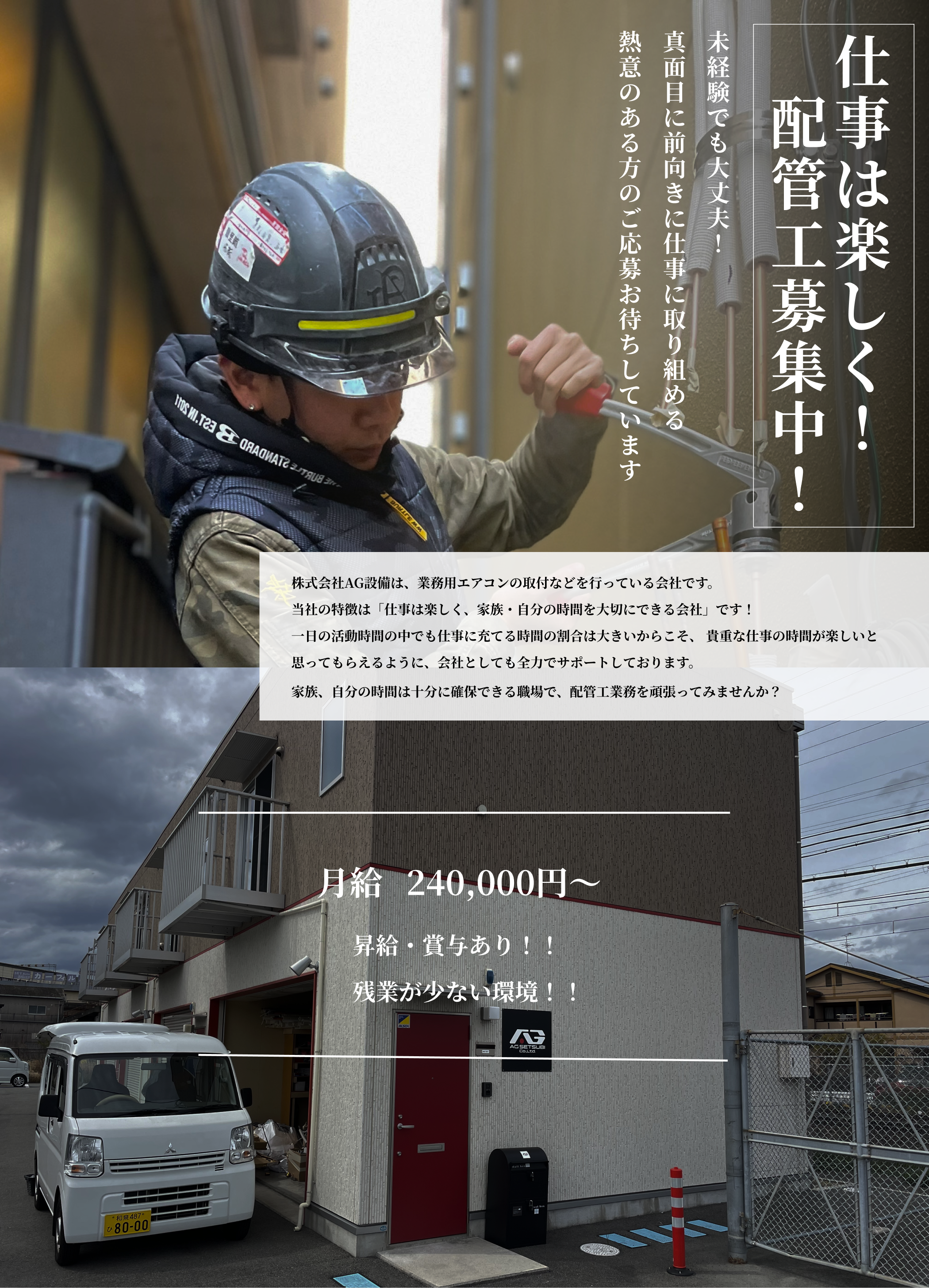 配管工作業員 業務用エアコンの取付を行なっていただきます |